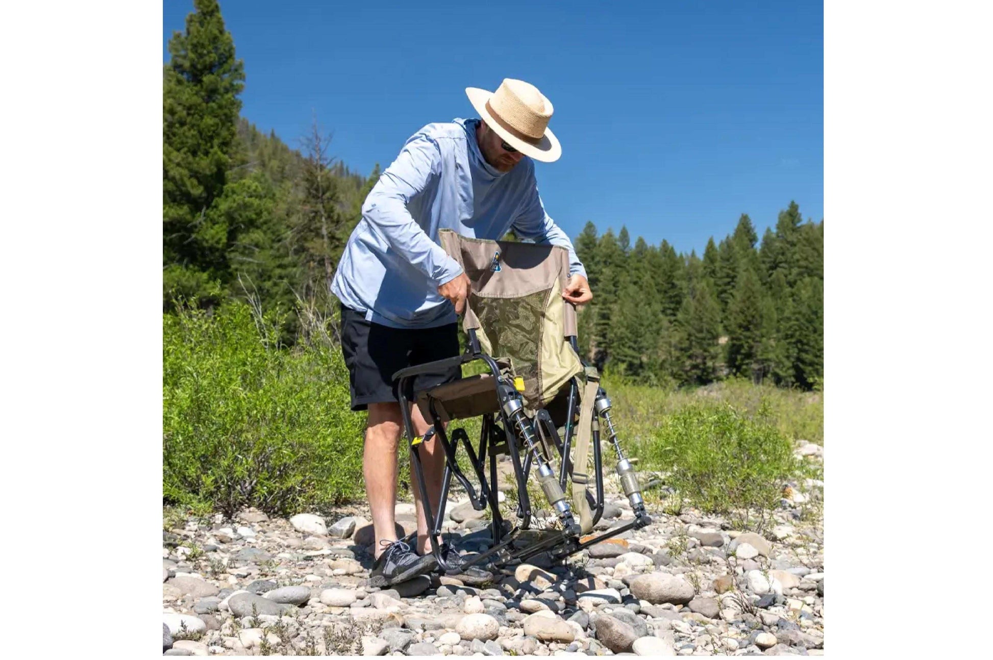 Der Adjustable Rocker ist ein komfortabler, tragbarer Schaukelstuhl, der dir ein angenehmes Schaukeln im Freien ermöglicht. Er verfügt über eine strukturierte Sitzfläche, die dir Halt bietet, ein Mesh-Panel, das für Belüftung sorgt, und eine Seitentasche, in der du dein Handy und andere wichtige Dinge verstauen kannst. Die patentierte Spring-Action Rocking Technology™ sorgt für eine sanfte Schaukelbewegung auf jedem Untergrund – vom Rasen bis zum Strand.