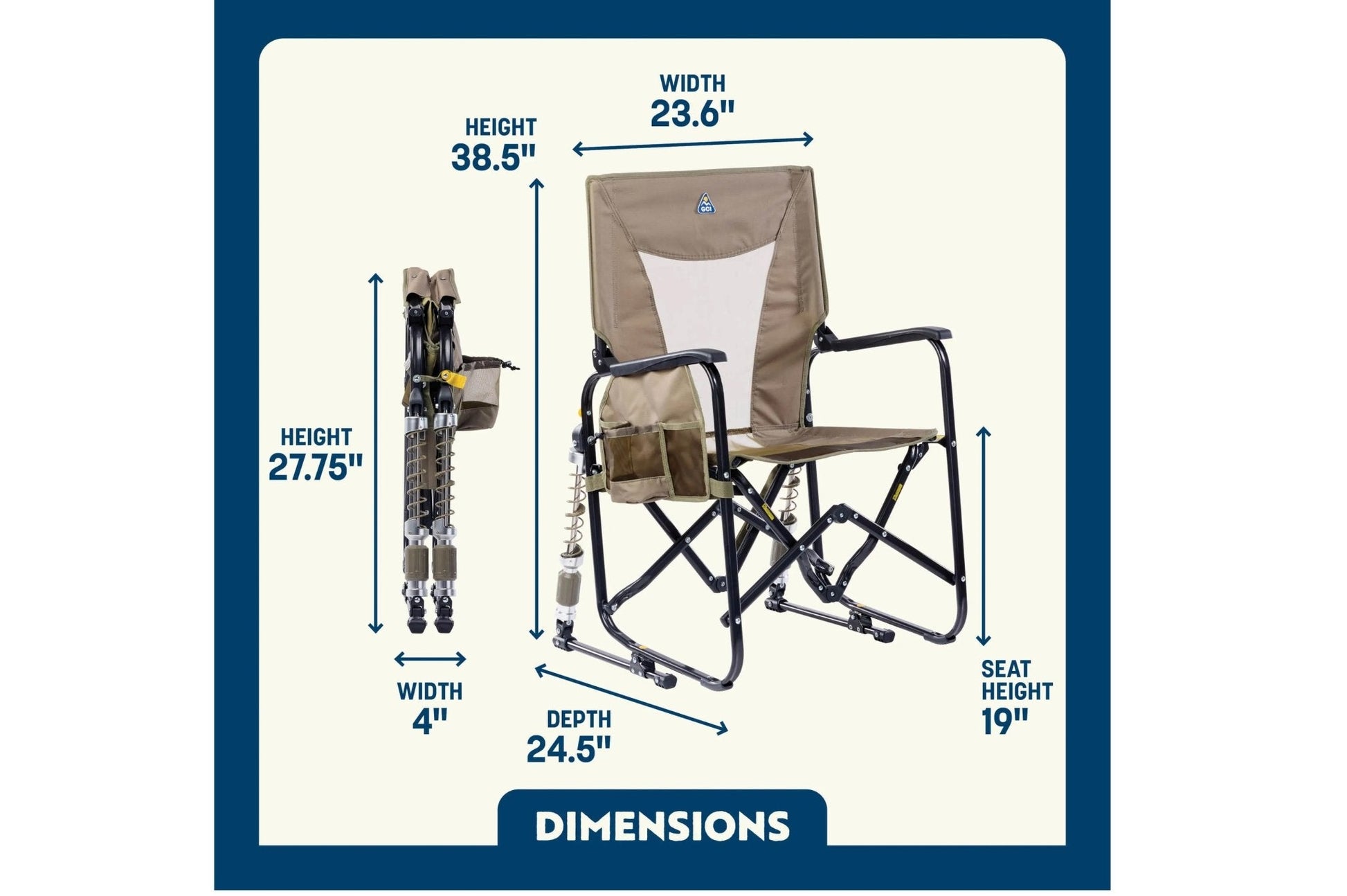 Der Adjustable Rocker ist nicht nur gemütlich, sondern auch praktisch. Er ist aus robustem, pulverbeschichtetem Stahl gefertigt und hält bis zu 136 kg aus. Er lässt sich leicht zusammenklappen und in einer stabilen Tasche mit Tragegriff transportieren.