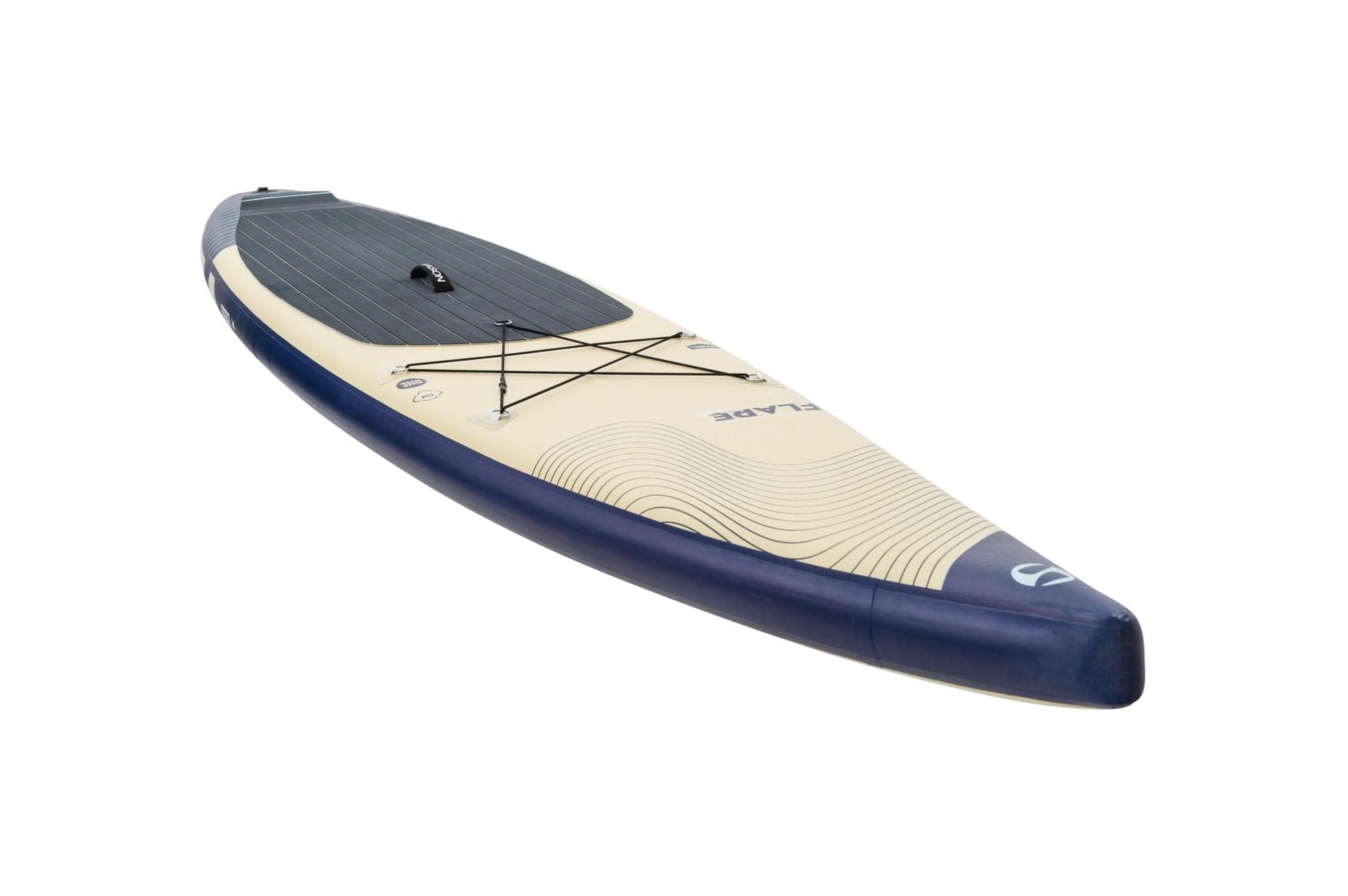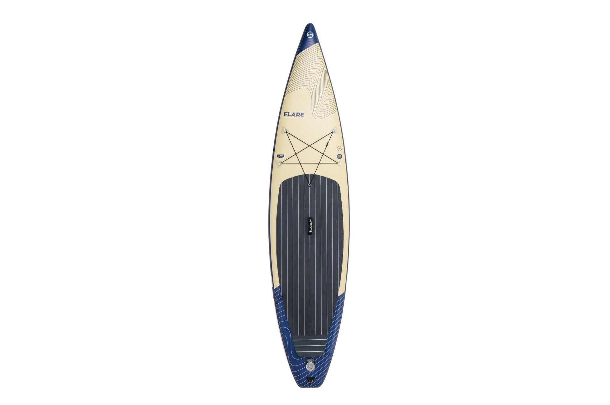 Das Flare 11.8 ist die leichtere und etwas einfachere Version des Flare Pro. Das Board ist für viele Einsatzbereiche geeignet und wird fast jedem Allround-Anspruch gerecht. Der Shape mit der breiten Standfläche und der schlanken Nose geben dem Board Standstabilität auch bei geringen Geschwindigkeiten, was das Spielen auf dem Wasser erleichtert. Die Form eines langen Tropfens lässt das Board aber auch gut gleiten. Da die Standfläche viel Volumen hat, trägt das Board auch etwas mehr Belastung. Die grosse EVA Standfläche ist mit einem trittsicheren Prägemuster ausgestattet. Das Board kann bei Niedrigwasser mit einer Flexfin gefahren werden, ohne die Gefahr das Finnen abbrechen. Somit ist man auch auf Flüssen gut unterwegs.