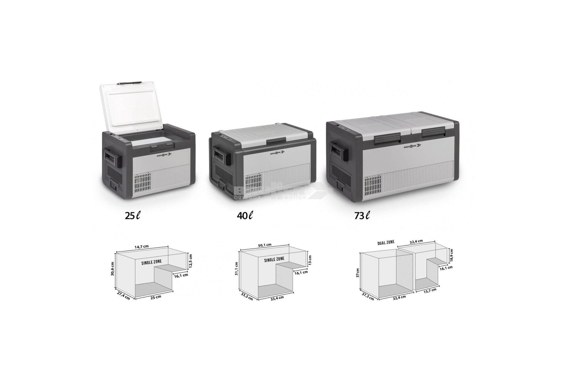 • Flexibel nutzbar mit 12V, 24V oder 230V; Größenoptionen: 25, 40 oder 73 Liter.