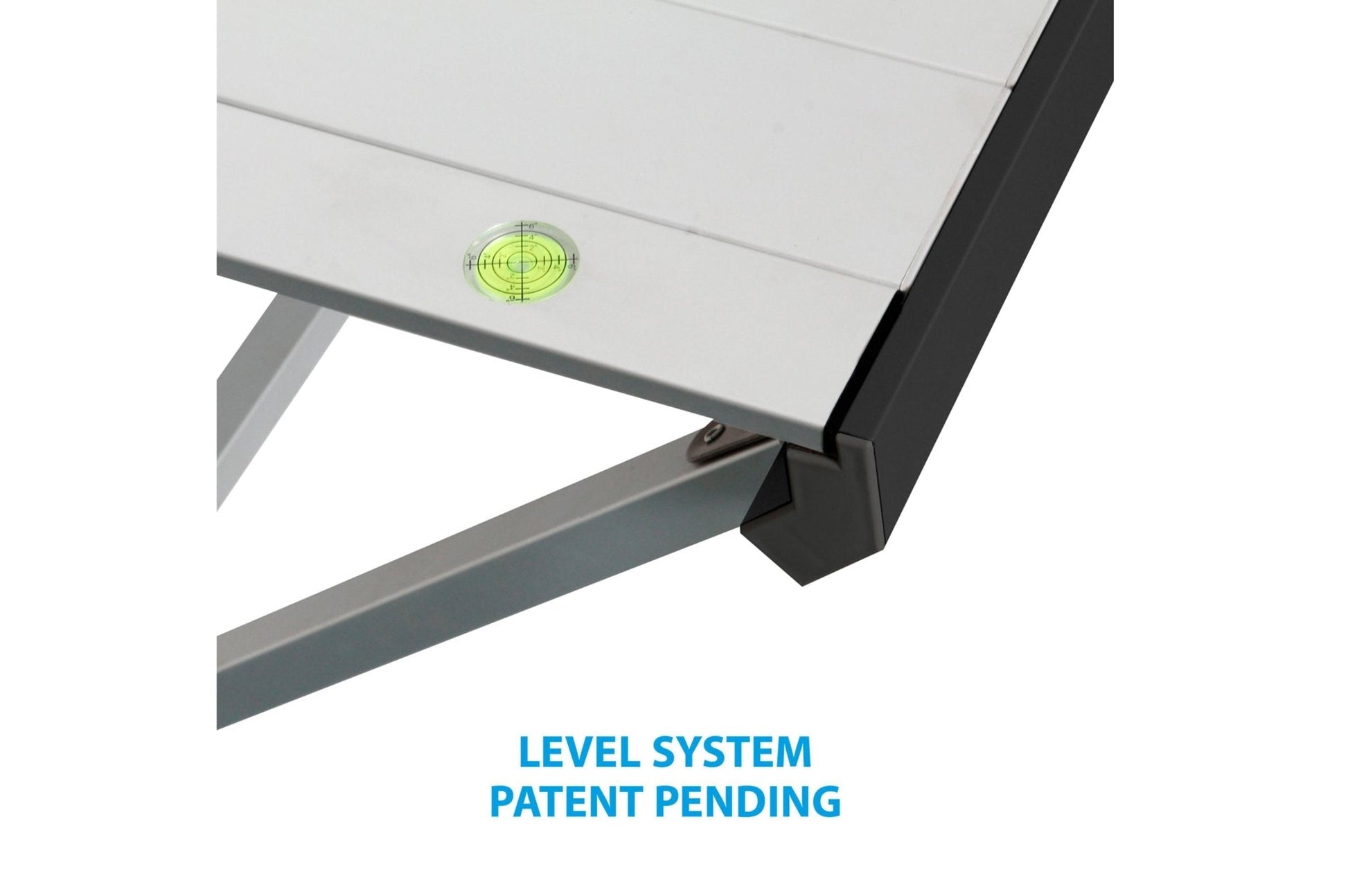 Der patentierte Aluminiumtisch vereint durchdachtes Design mit maximaler Funktionalität: Die silber eloxierte Rolltischplatte mit lückenlosem Gapless-System sorgt für eine glatte Oberfläche, während der stabile Klapprahmen aus Aluminium-Vierkantrohren und die zentrale Stabilisierungsstange für höchste Standfestigkeit garantieren. Dank integrierter Wasserwaage, höhenverstellbarem Bein und praktischer Netzablage ist der Tisch ideal für Camping, Outdoor-Einsätze oder den flexiblen Einsatz unterwegs. In der Transporttasche mit zwei separaten Fächern lässt sich alles bequem und sicher verstauen.