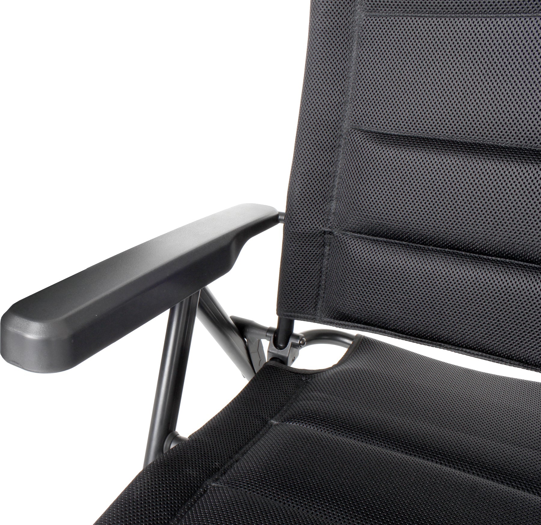 Entdecken Sie ultimativen Komfort im Freien mit unserem modernen, klappbaren V-Leg Stuhl. Die 7-fach verstellbare Rückenlehne und das atmungsaktive, gepolsterte 3D-Gewebe bieten maximale Entspannung. Das Aluminium-Gestell aus belastbarem Ovalprofil sorgt für Stabilität und ein geringes Gewicht, ideal für den einfachen Transport. Die ergonomische Rückenlehne mit integrierter Kopfauflage und die robusten Kunststoffarmlehnen erhöhen den Sitzkomfort. Das zentrale Stahlgelenk bietet zusätzliche Sicherheit und Stabilität. Kompakt und leicht zu transportieren, ist dieser Stuhl perfekt für Camping, Picknicks und Festivals. Genießen Sie Luxus und Komfort bei jedem Outdoor-Abenteuer.