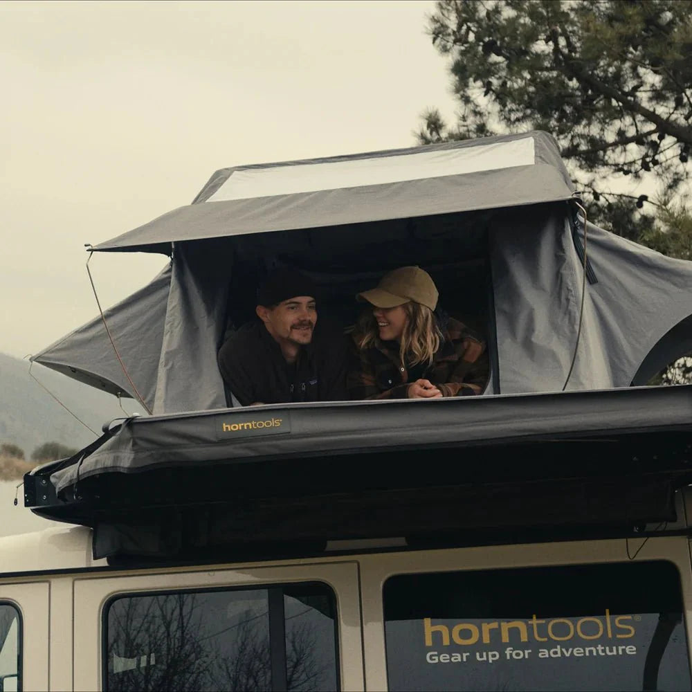 Das horntools Dachzelt Elements vereint langjährige Erfahrung im Bereich Dachzelt und bietet alles, was auf einem Overlanding & Camping Abenteuer benötigt wird. Es kommt als eines der fortschrittlichsten Dachzelte mit einigen spannenden neuen Features auf dem Markt.