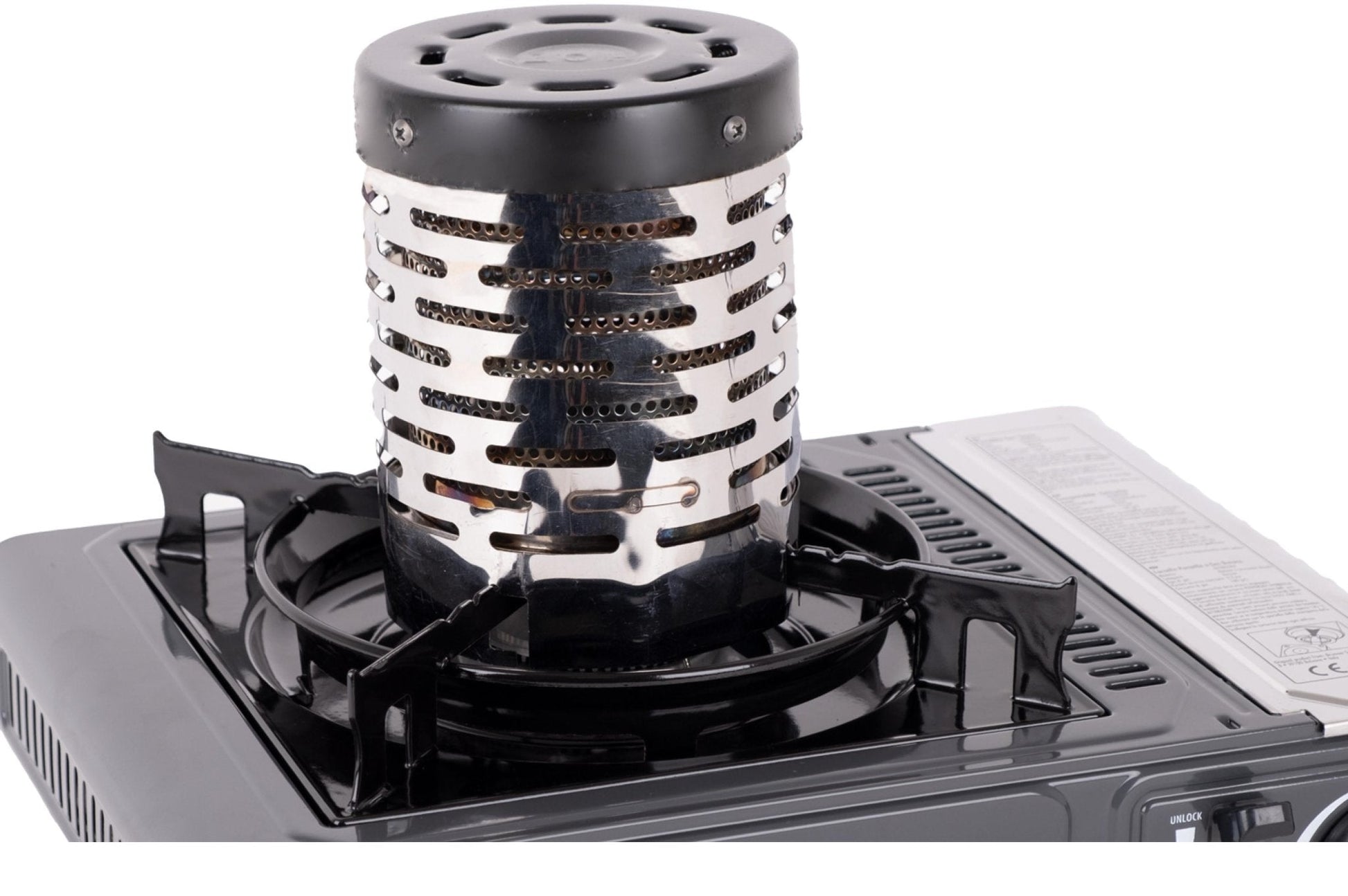 Heizstrahler für Devil-Gasherde. Wandelt eine normale, vom Herd erzeugte Flamme in Wärmeenergie um. Hochtemperaturbeständige Konstruktion aus rostfreiem Stahl. Schnelle und einfache Installation mit Bajonettanschluss.