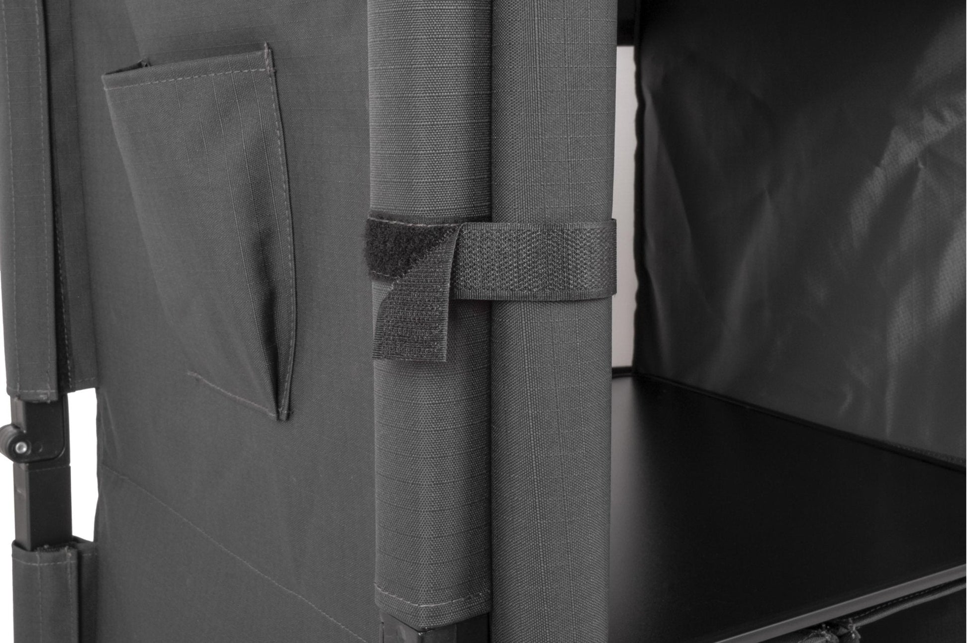 • Höhenverstellbare Füße und Utensilientaschen an den Seiten.