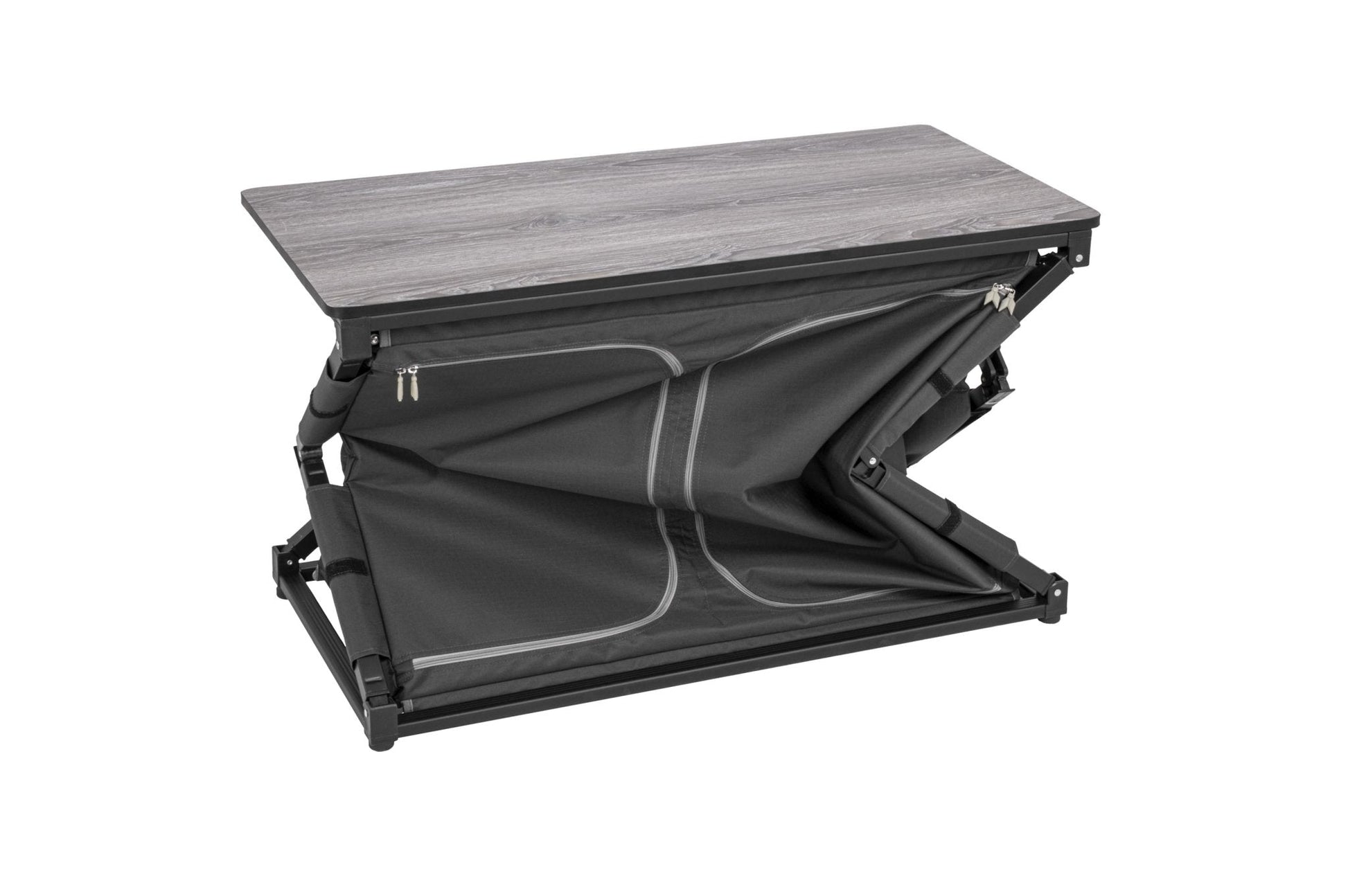 • Stabiles Aluminium-Vierkantprofil mit schnellem Klappmechanismus.