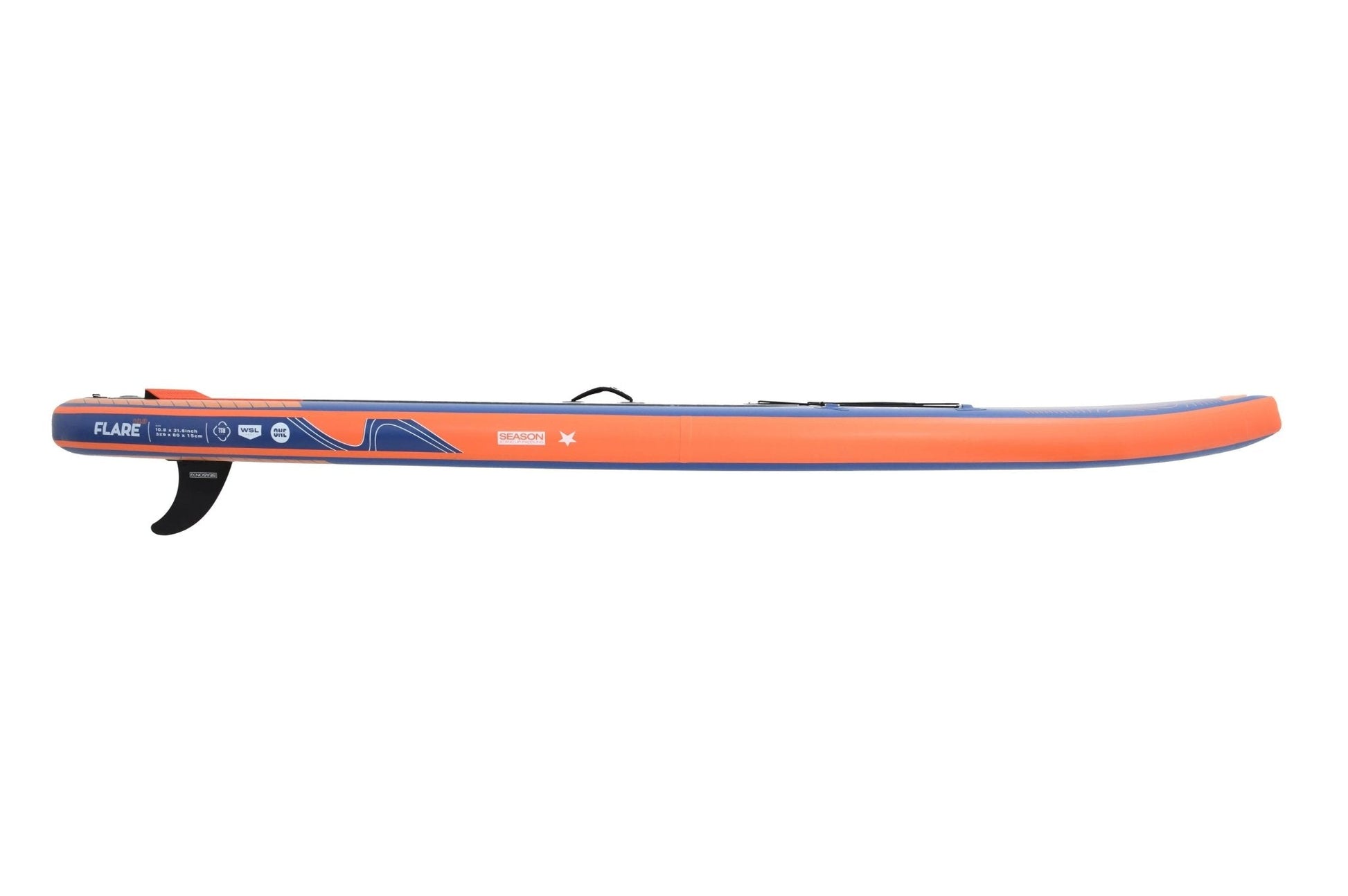 Das Flare 10.8 ist die leichtere und etwas einfachere Version des Flare Pro. Das Board ist für viele Einsatzbereiche geeignet und wird fast jedem Allround-Anspruch gerecht. Der Shape mit der breiten Standfläche und der schlanken Nose geben dem Board Standstabilität auch bei geringen Geschwindigkeiten, was das Spielen auf dem Wasser erleichtert. Die Form eines langen Tropfens lässt das Board aber auch gut gleiten. Da die Standfläche viel Volumen hat, trägt das Board auch etwas mehr Belastung. Die grosse EVA Standfläche ist mit einem trittsicheren Prägemuster ausgestattet. Das Board kann bei Niedrigwasser mit einer Flexfin gefahren werden, ohne die Gefahr das Finnen abbrechen. Somit ist man auch auf Flüssen gut unterwegs.