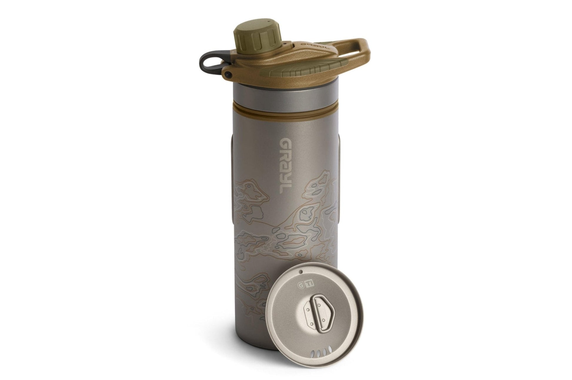 Die GeoPress® Ti ist das ultimative Werkzeug für Outdoor-Enthusiasten, Reisende und Survivalisten. Diese vielseitige 710 ml Flasche aus CP4 Grade 1 Titan vereint Wasserbehälter, Filter, Reiniger, Trinkgefäß und Kochgeschirr in einem kompakten Design.