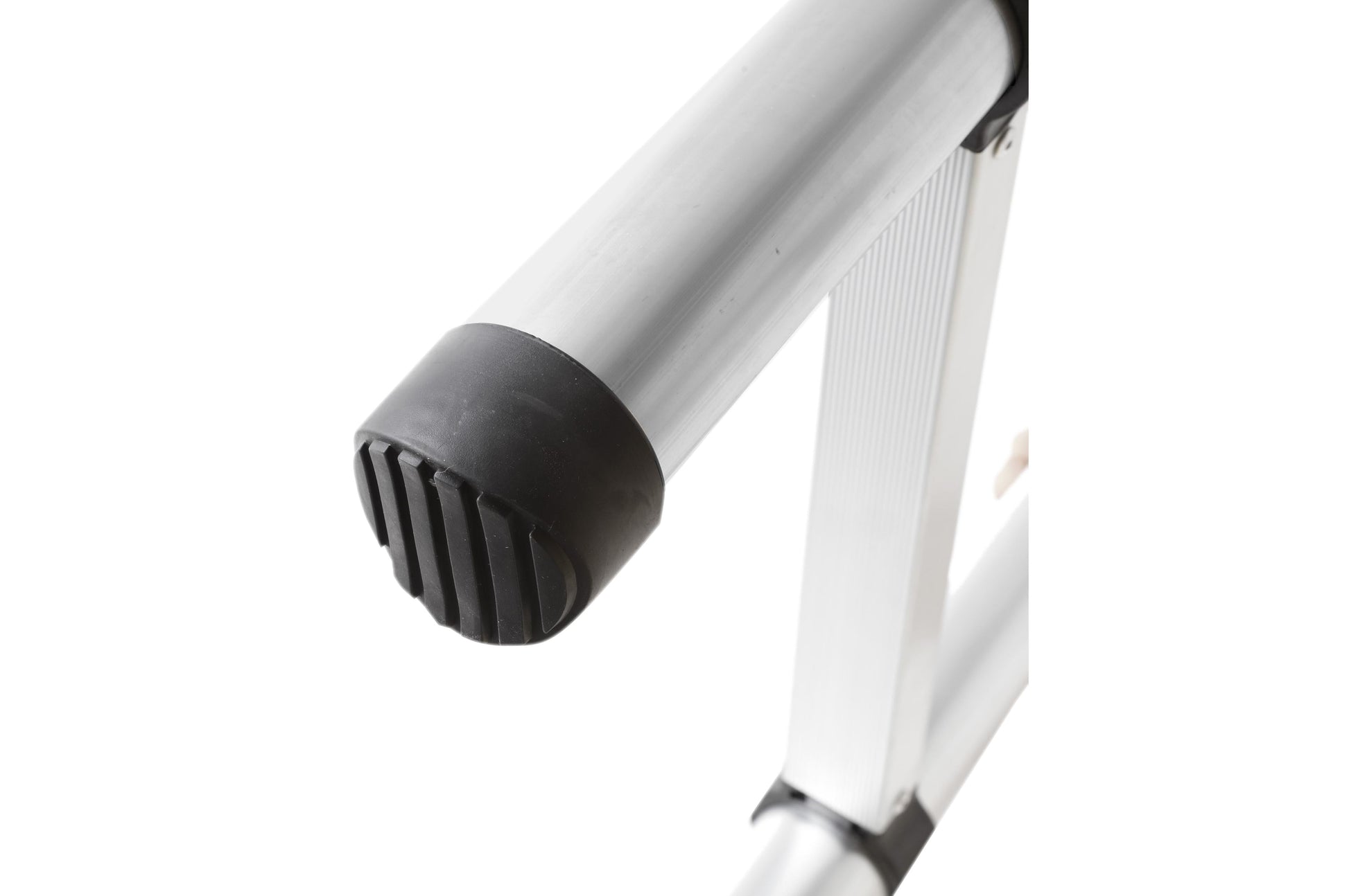 Teleskopierbare Aluminiumleiter mit neu entwickelter luftunterstützter Soft Close-Technologie, die das Risiko von Fingerverletzungen ausschließt. Leicht zu transportieren und höhen- verstellbar. Ausgestattet mit rutschfesten Gummischonern für mehr Sicherheit. Sehr kompakt.