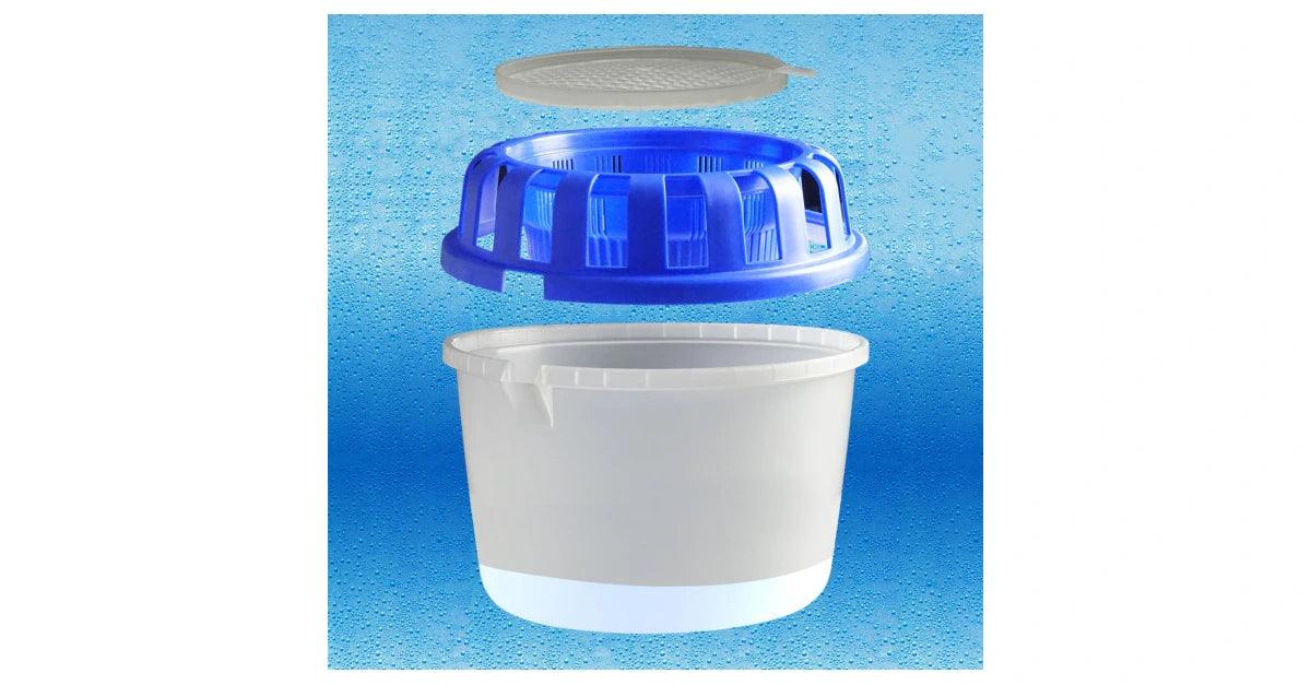 - Wasser in der Luft wird durch die Granulatkristalle gebunden und tropft in den praktischen Auffangbehälter.
