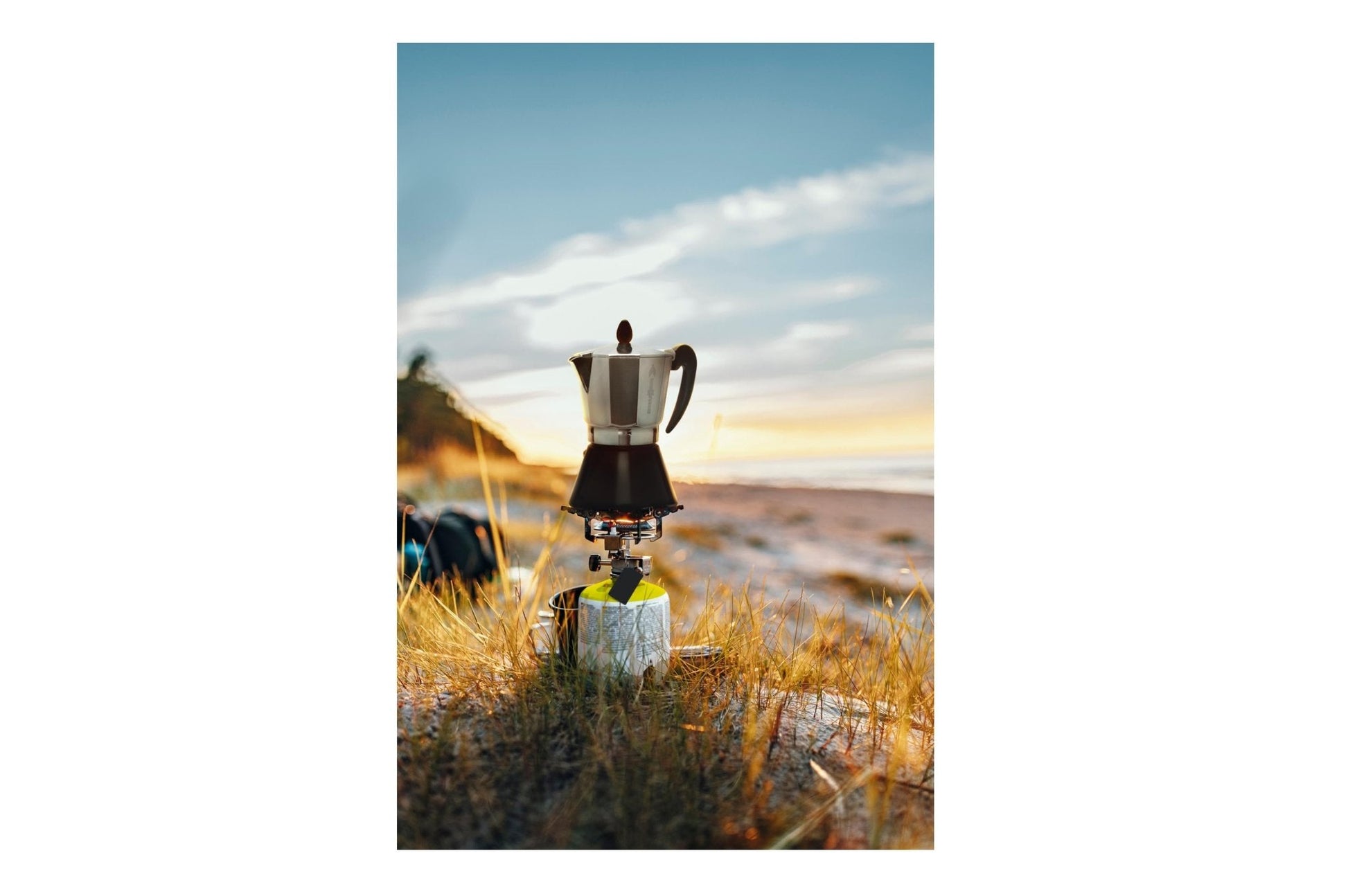 Die McMoka-Induktionskaffeemaschine entstand aus der ständigen Suche nach neuen Lösungen, die sich den wechselnden und sich weiterentwichelnden Geschmäckern und Gewohnheiten der Outdoor Welt anpassen. Ganz aus Aluminium mit einem Boden aus Stahl gefertigt, repräsentiert sich die historische Moka-Kanne, auf die wir nicht verzichten können, aber mit Vorteil einer sehr breiten, als auch sehr stabilen Basis und der Möglichkeit, sie auf jedem Kochfeld zu verwenden. Erhältlich in 2 Versionen, für 3 und 6 Personen.