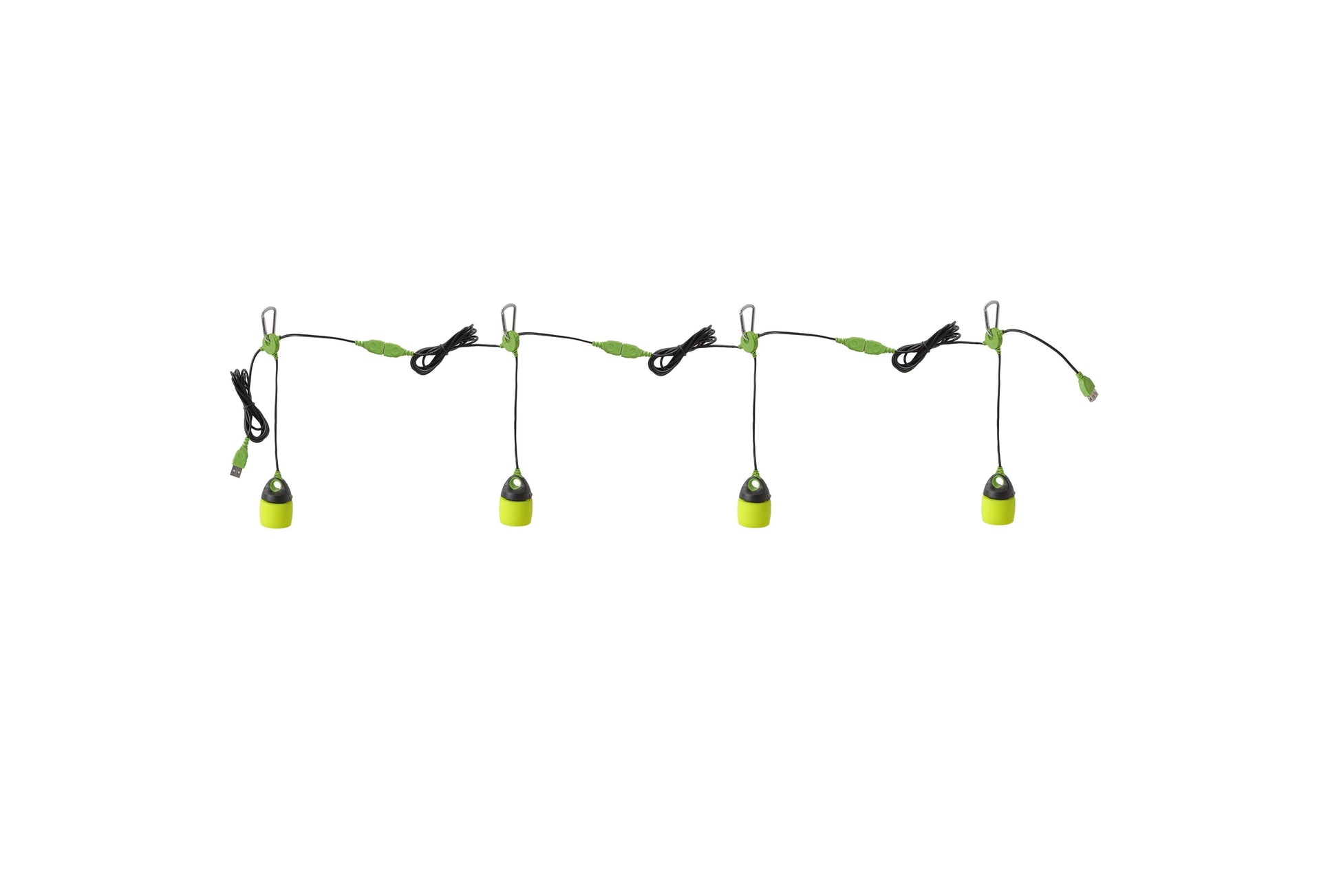 LED-Outdoor-Leuchte mit integrierten USB-Kabeln, die eine Reihenschaltung mit bis zu 4 Leuchten ermöglichen. Die helle und leichte Kettenleuchte bietet 200 Lumen für die Beleuchtung von Zelten, Markisen und Pavillons. Der verstellbare Schirm ist aus weichem Silikon gefertigt und ermöglicht die Wahl zwischen weichem oder Spot-Licht. Geringer Stromverbrauch für lang anhaltendes Licht, das von jedem USB-Port aus zu beziehen ist. Inklusive Hängekarabinerhaken.