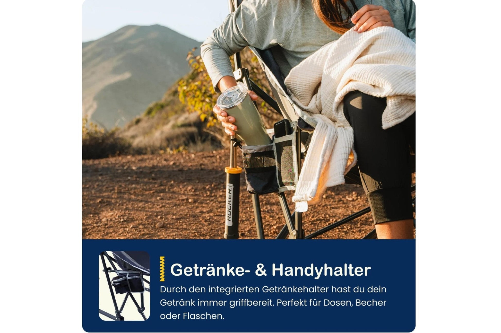 Der Pod Rocker ist ein komfortabler, tragbarer Schaukelstuhl, der dir ein angenehmes Schaukeln im Freien ermöglicht. Er verfügt über eine strukturierte Sitzfläche, die dir Halt bietet, ein Mesh-Panel, das für Belüftung sorgt, und eine Seitentasche, in der du dein Handy und andere wichtige Dinge verstauen kannst. Die patentierte Spring-Action Rocking Technology™ sorgt für eine sanfte Schaukelbewegung auf jedem Untergrund – vom Rasen bis zum Strand.