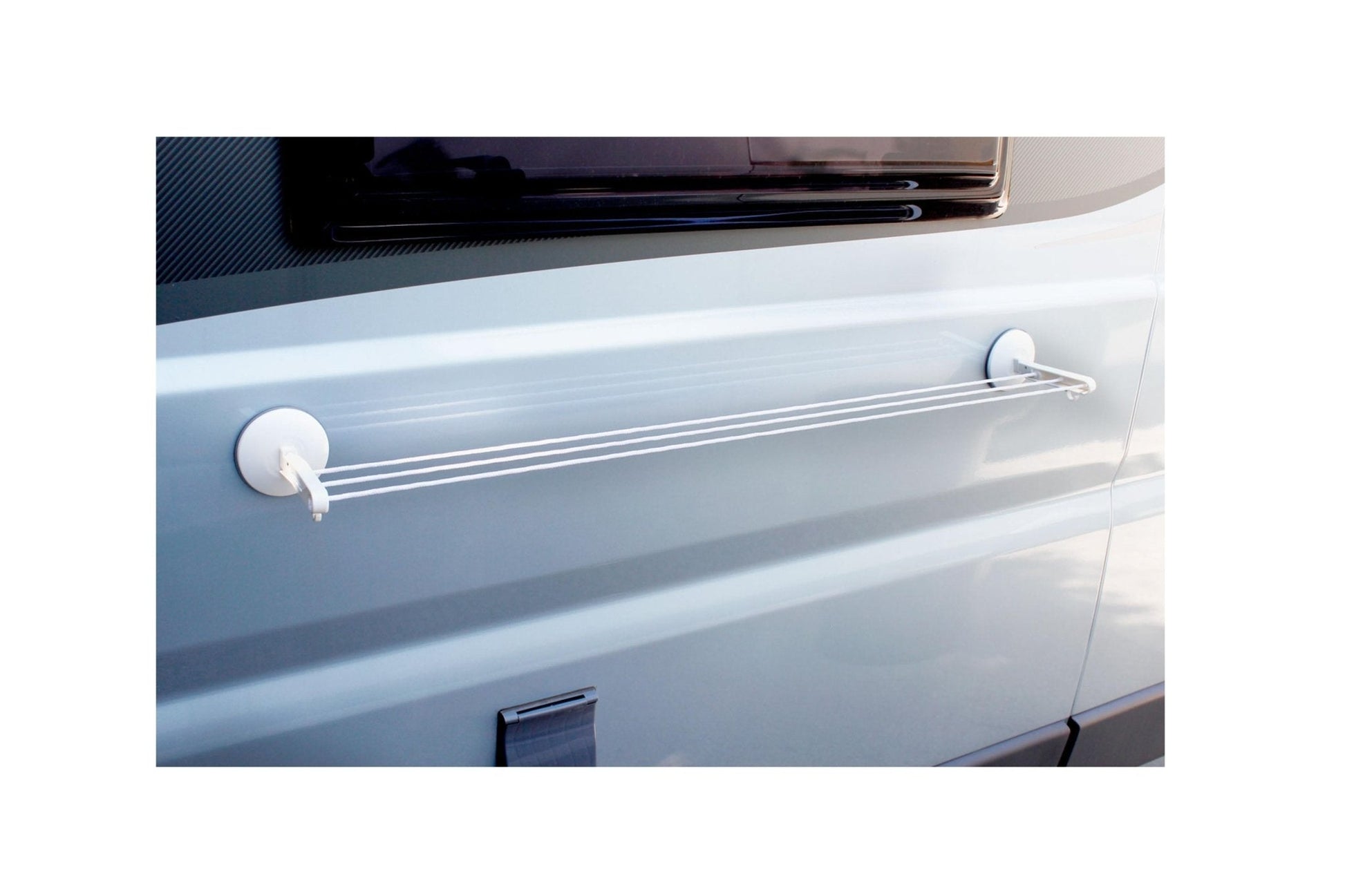 Wäscheständer mit Saughaken für die Befestigung am Auto.