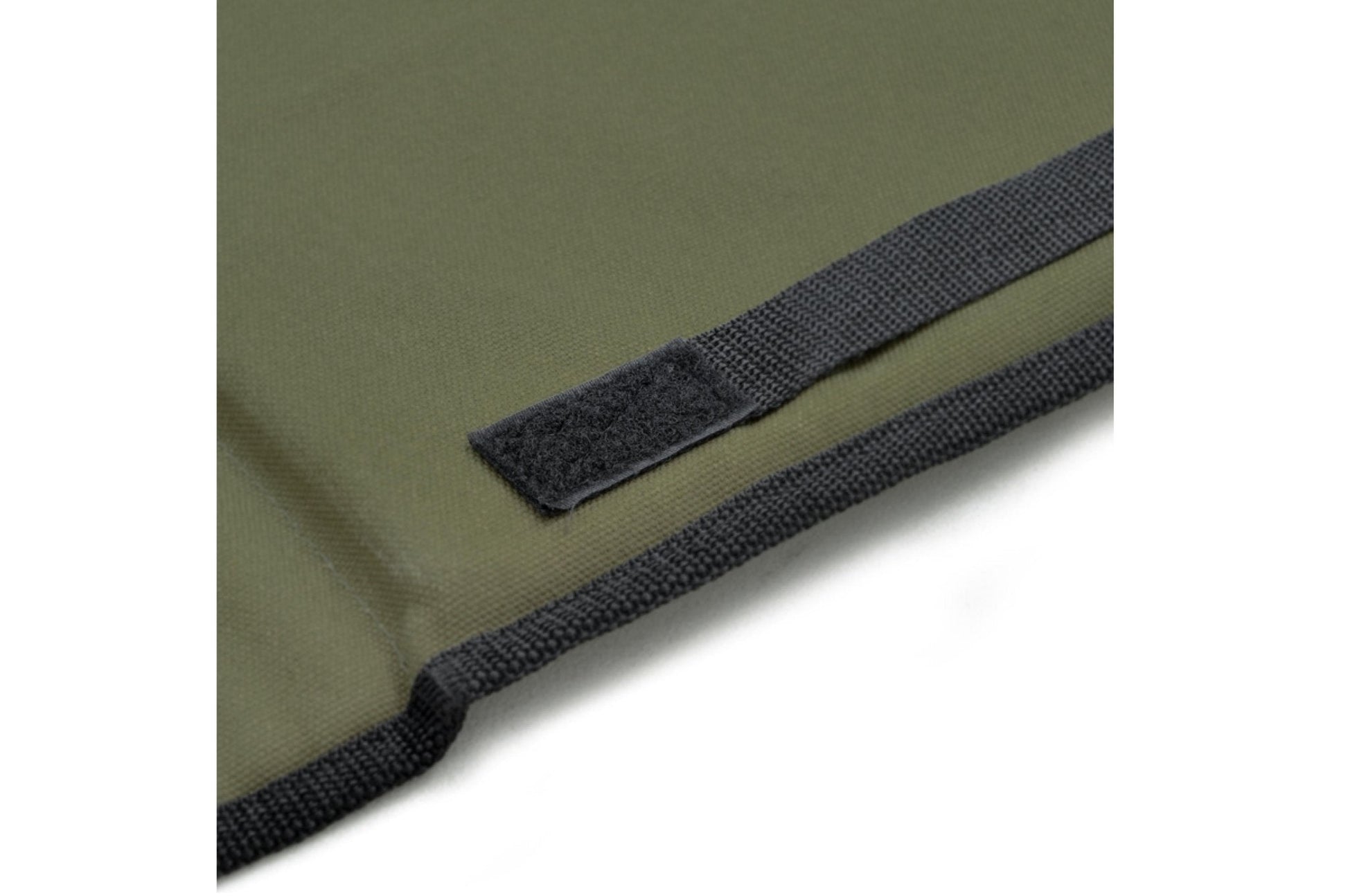 Das wasserdichte und abriebfeste 500G-Canvasgewebe wird von verdickten Edelstahlrahmen gestützt, die bis zu 120 kg tragen können. Eine große Reißverschlusstasche bietet sicheren Stauraum hinter der Liege.