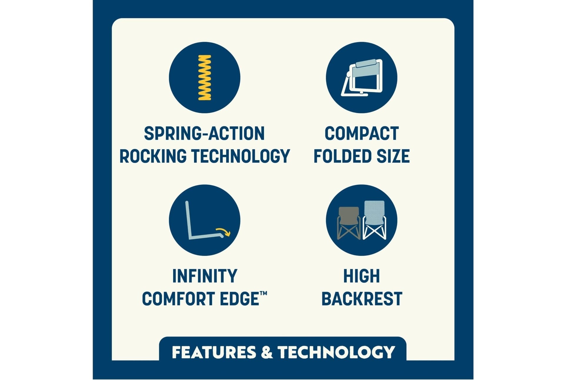Der Stowaway Rocker von GCI Outdoor ist die ideale Lösung für alle, die auch unterwegs nicht auf Komfort verzichten möchten. Mit seinem innovativen, platzsparenden Design ist er 35 % kompakter als herkömmliche Modelle und lässt sich dank der Eazy-Fold-Technologie schnell und einfach zusammenklappen. Die patentierte Spring-Action Rocker Technology™ sorgt für sanftes Schaukeln auf nahezu jedem Untergrund, während der Infinity Comfort Edge™ Sitz und die gepolsterten Armlehnen höchsten Sitzkomfort garantieren. Ein robuster, pulverbeschichteter Stahlrahmen und die atmungsaktive Netzlehne machen den Stuhl besonders langlebig und angenehm in der Nutzung. Praktische Extras wie ein integrierter Tragegriff, eine wechselbare Seitentasche mit XL-Getränkehalter und ein separates Handyfach runden das durchdachte Design ab. Mit einer Tragkraft von bis zu 113 kg ist der Stowaway Rocker der perfekte Begleiter für Camping, Festivals oder entspannte Stunden im Garten.