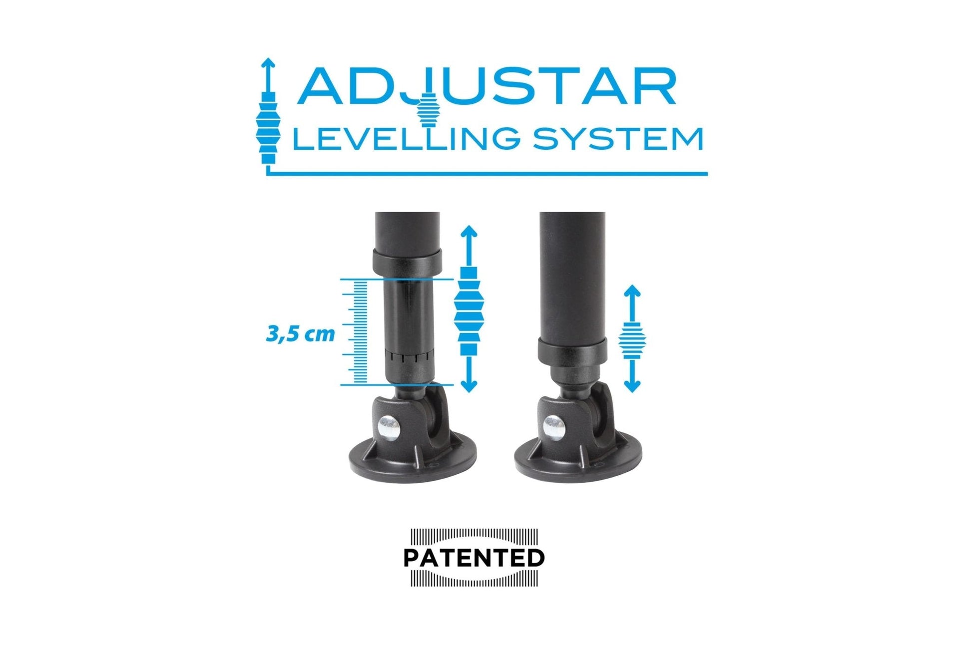 Hochwertiger Camping- und Outdoortisch, ausgestattet mit der neu entwickelten, leichtgewichtigen Exteriolit Tischplatte aus dem Hause Severin. Höchste Stabilität dank unseres patentierten Alu-Gestells und dem revolutionären Adjustar Nivellierungssystem.