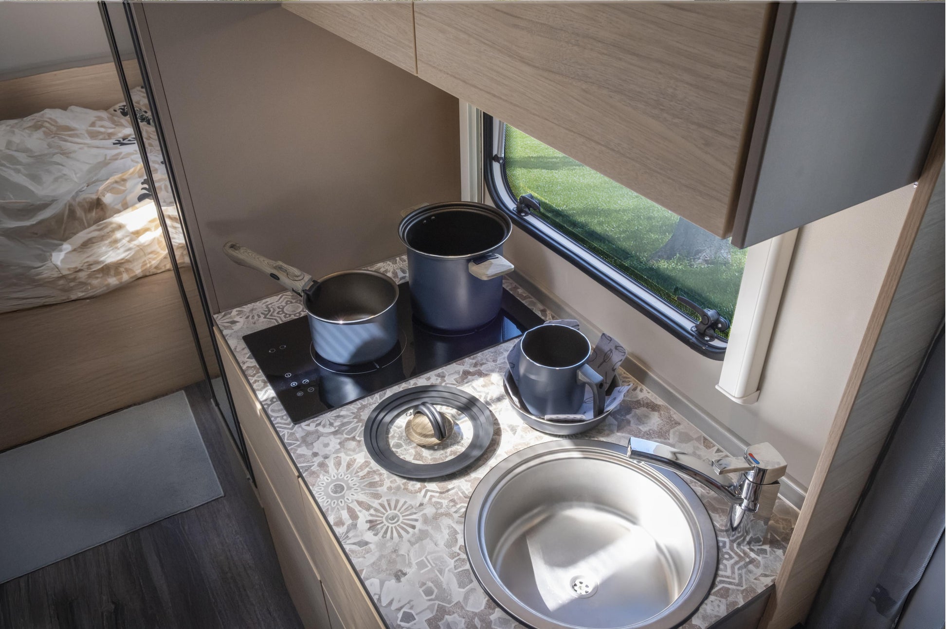 Das stapelbare Topfset Torralta ist die ideale Wahl für Wohnmobil- und Bootsbesitzer, die effizientes Kochgeschirr suchen. Entwickelt für kompakte Kochherde, bietet es ein hervorragendes Verhältnis von Oberfläche zu Volumen, um größere Mengen zubereiten zu können. Dank des speziellen Kantendesigns bleiben Pfannen sicher an ihrem Platz. Gefertigt aus recyceltem Aluminium, ist das Set mit allen Herdarten, einschließlich Induktion, kompatibel. Die klappbaren Griffe sorgen für eine platzsparende Aufbewahrung, und ein abnehmbarer Griff für die inneren Töpfe und Pfannen ist ebenfalls enthalten.