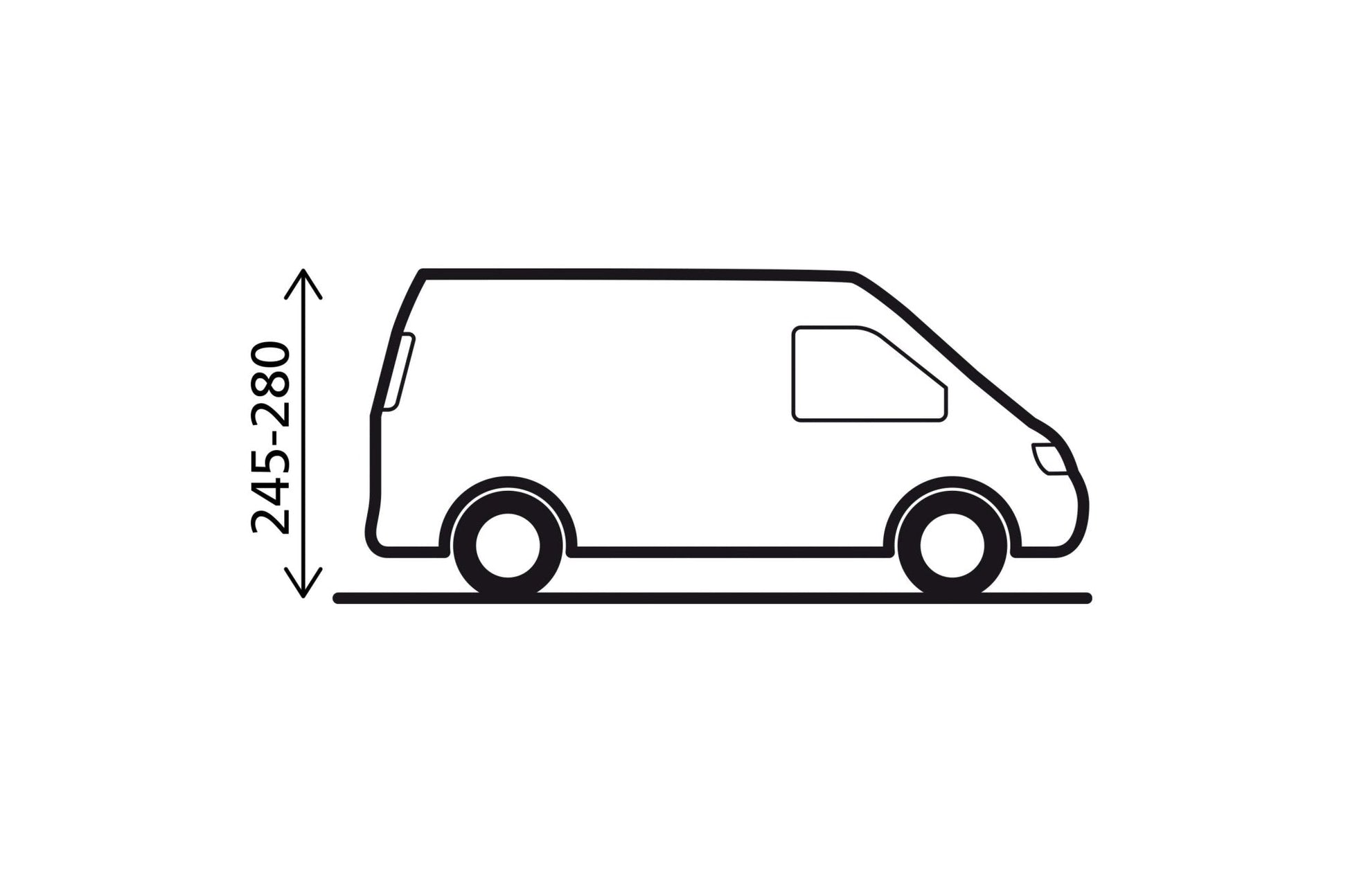 Das Zelt wird mit Montagematerial und Packtasche geliefert und bietet verschiedene Anschlussmöglichkeiten zum Fahrzeug mit einer Anschlusshöhe von 245 bis 280 cm. Erleben Sie die Freiheit und Flexibilität des mobilen Campings mit unserem freistehenden Buszelt.