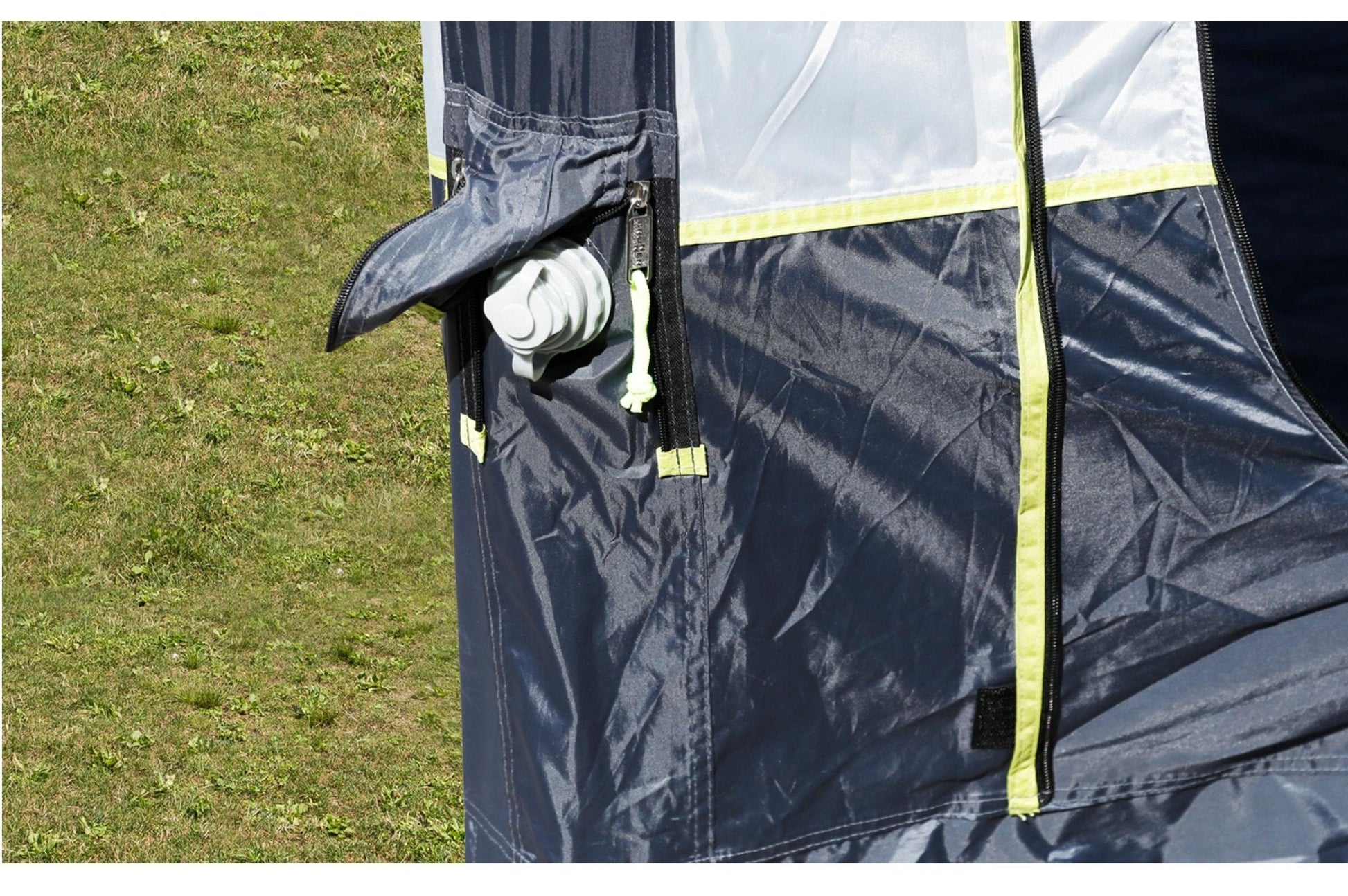 Entdecken Sie die Freiheit des mobilen Lebens mit unserem freistehenden Buszelt, das Komfort, Flexibilität und Stabilität vereint. Dank des aufblasbaren A.I.R. Tech Luftgerüsts mit 2 Bögen steht das Zelt im Handumdrehen stabil ohne lästiges Gestänge.