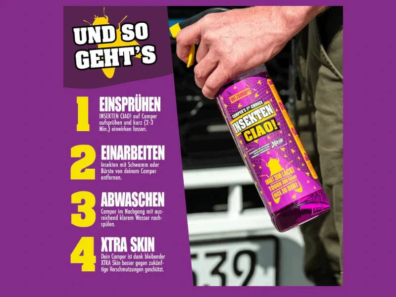 Der INSEKTEN CIAO! sagt Adieu zu jeglicher Art von Insektenrückständen. Er wirkt extra stark, trotzdem schonend und kommt natürlich mit unserem innovativen XTRA Skin Effekt.