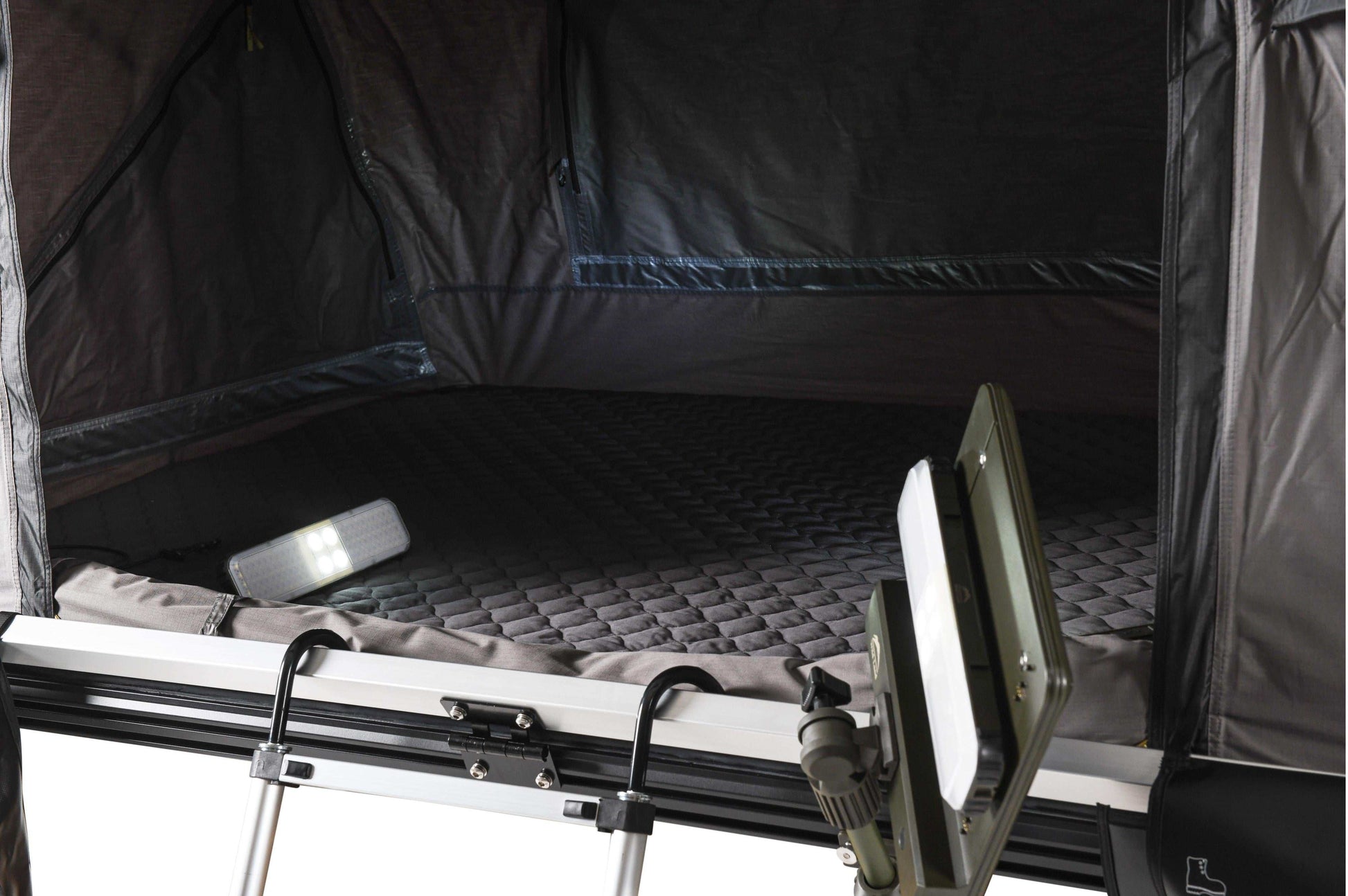 | Konstruktion | Hartschalen-Dachzelt mit ultraleichter Wabenbasis und Aluminiumrahmen |