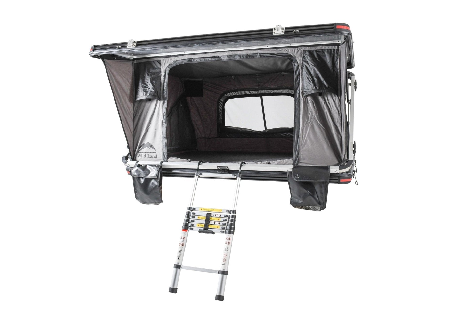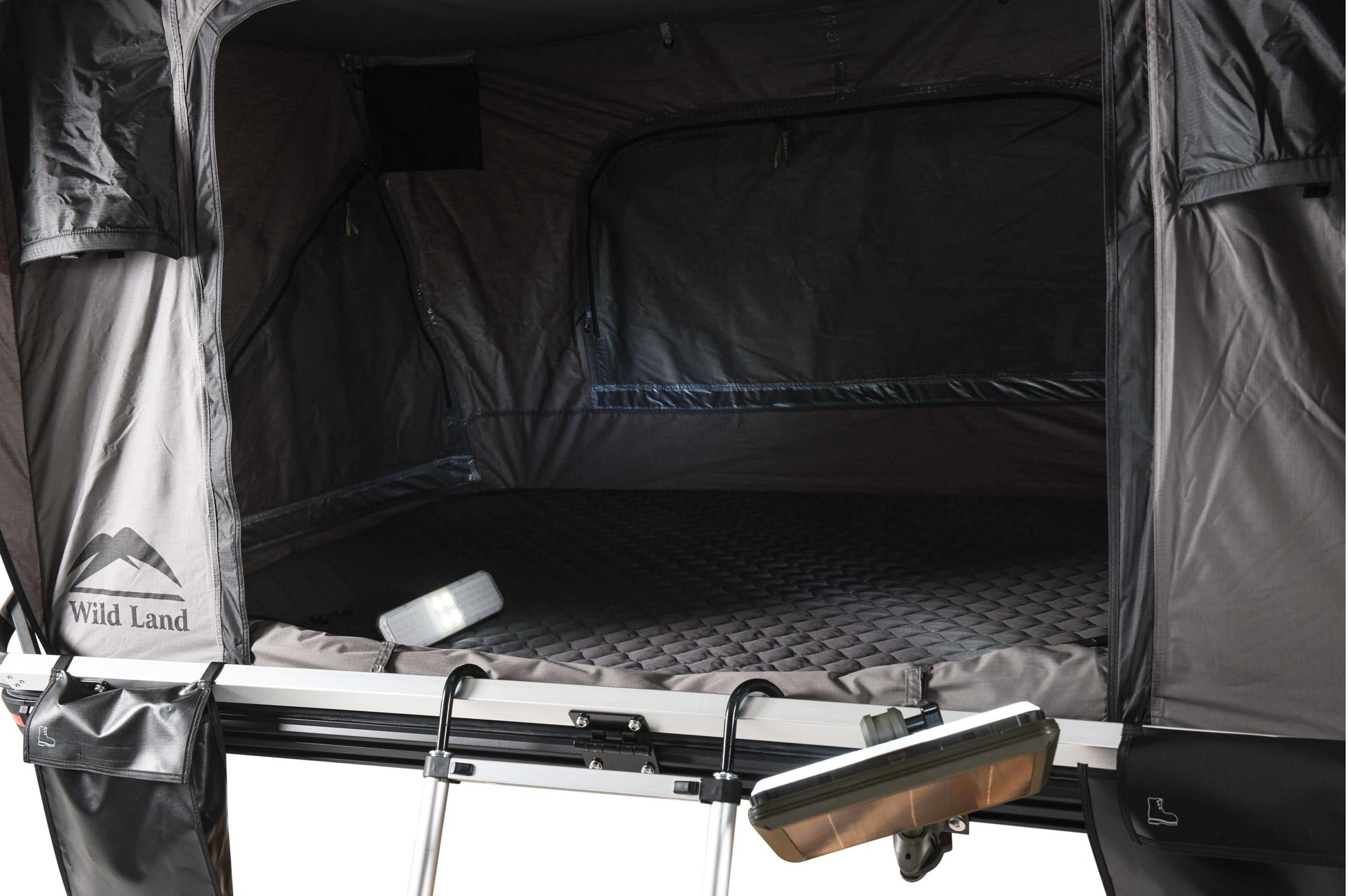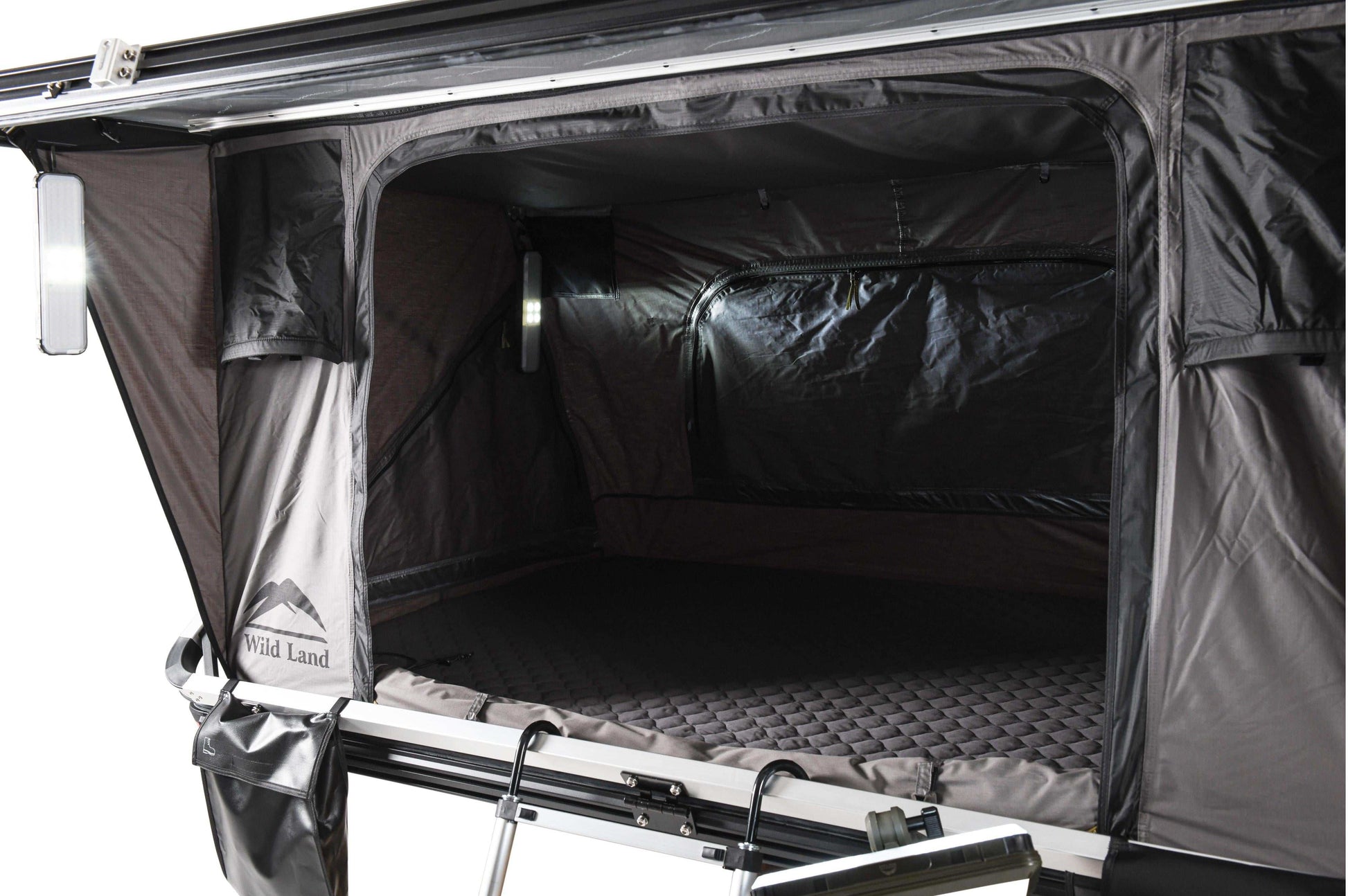 Das Z-Shape ist das Autodachzelt von Wild Land mit einem Hardtop und einem massiven Aluminium-Frame. Das Z-Shape ist ein kompaktes, flaches und sehr schnell aufgestelltes Dachzelt für 2-3 Personen. Es ist wie viele Wild Land Dachzelte aus hochwertigem 210D Rip-Stop Polyoxford mit einer PU3000mm Beschichtung ausgestattet. Dazu ist der ausgesetzte Aussenstoff zusätzlich mit einem UPF 50+ Filter versehen. Durch den UPF Filter wird der Stoff nachhaltig geschützt und behält die wichtigen Funktionen. Das Dachzelt ist in nur wenigen Minuten und mit wenigen Handgriffen in 2-4 Minuten aufgestellt. Die Mechanik mit den beiden Gasdruckzylindern stellt das Aufklappen ganz ohne Mithilfe sicher. In fahrendem Zustand darf das Dachzelt, die im Fahrzeugausweis des KFZ notierte Dachlast nicht überschreiten. Im Lieferumfang ist auch eine Lampe zur Befestigung am Zelt sowie 2 Lastenträger die auf dem Deckel befestigt werden können.